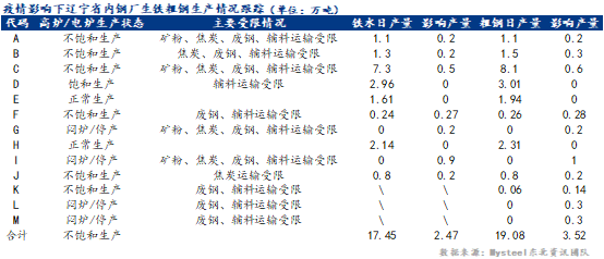 從今日調(diào)研情況來看,目前遼寧省內(nèi)10家長(zhǎng)流程鋼廠鐵水日產(chǎn)量17.45萬噸左右,受原料不足影響日產(chǎn)量減少2.47萬噸,減產(chǎn)12.4%;13家樣本鋼廠粗鋼日產(chǎn)量19.08萬噸左右,受原料不足影響日產(chǎn)量減少3.52萬噸左右,減產(chǎn)15.56%。