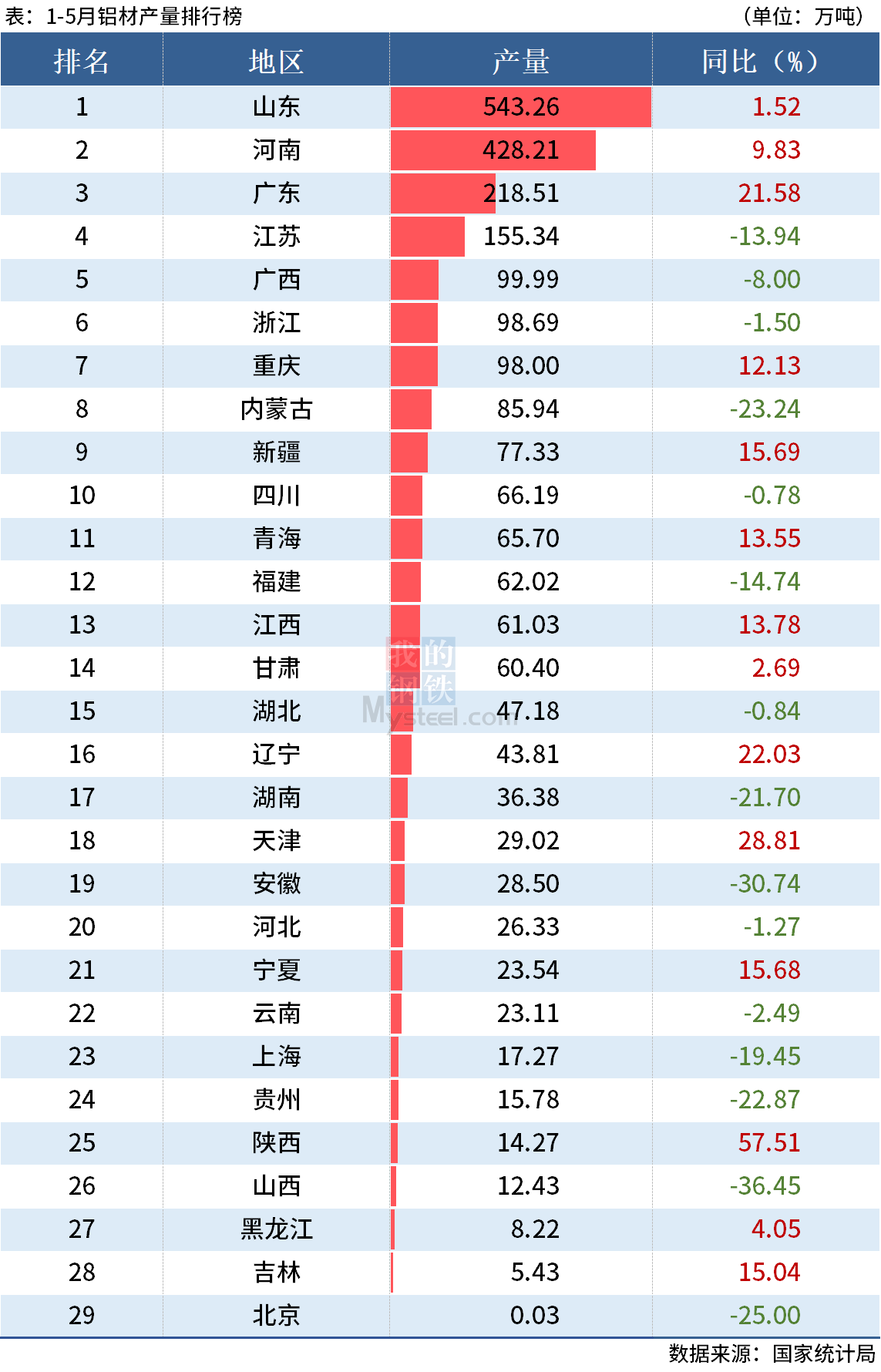 國家統(tǒng)計(jì)局?jǐn)?shù)據(jù)顯示,2022年5月全國鋁材產(chǎn)量535.6萬噸,1-5月鋁材產(chǎn)量2451.9萬噸。其中,前5月山東、河南和廣東鋁材產(chǎn)量分別同比增長1.52%、9.83%和21.58%。