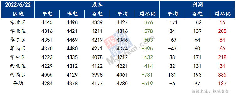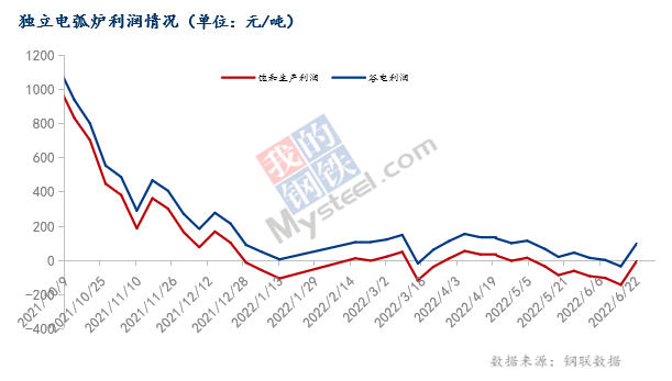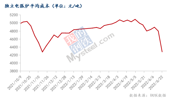 獨(dú)立電弧爐建筑鋼材鋼廠周度成本調(diào)研(2022年6月22日)(單位:元/噸)