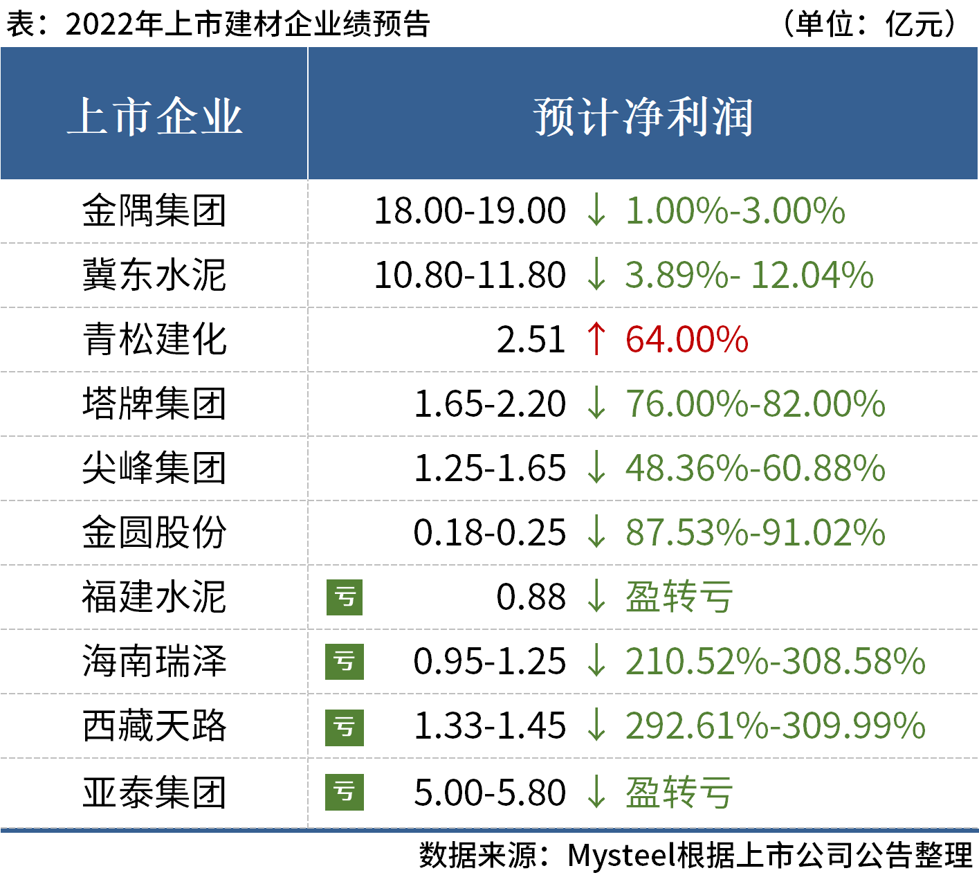 據Mysteel不完全統計,截至7月15日,金隅集團、冀東水泥和青松建化等10家上市建材企業(yè)披露2022年上半年業(yè)績預告。