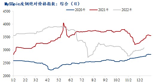 截止12月13日,Mysteel廢鋼絕對(duì)價(jià)格指數(shù)在3083.5元/噸,日環(huán)比上漲26.5元/噸。