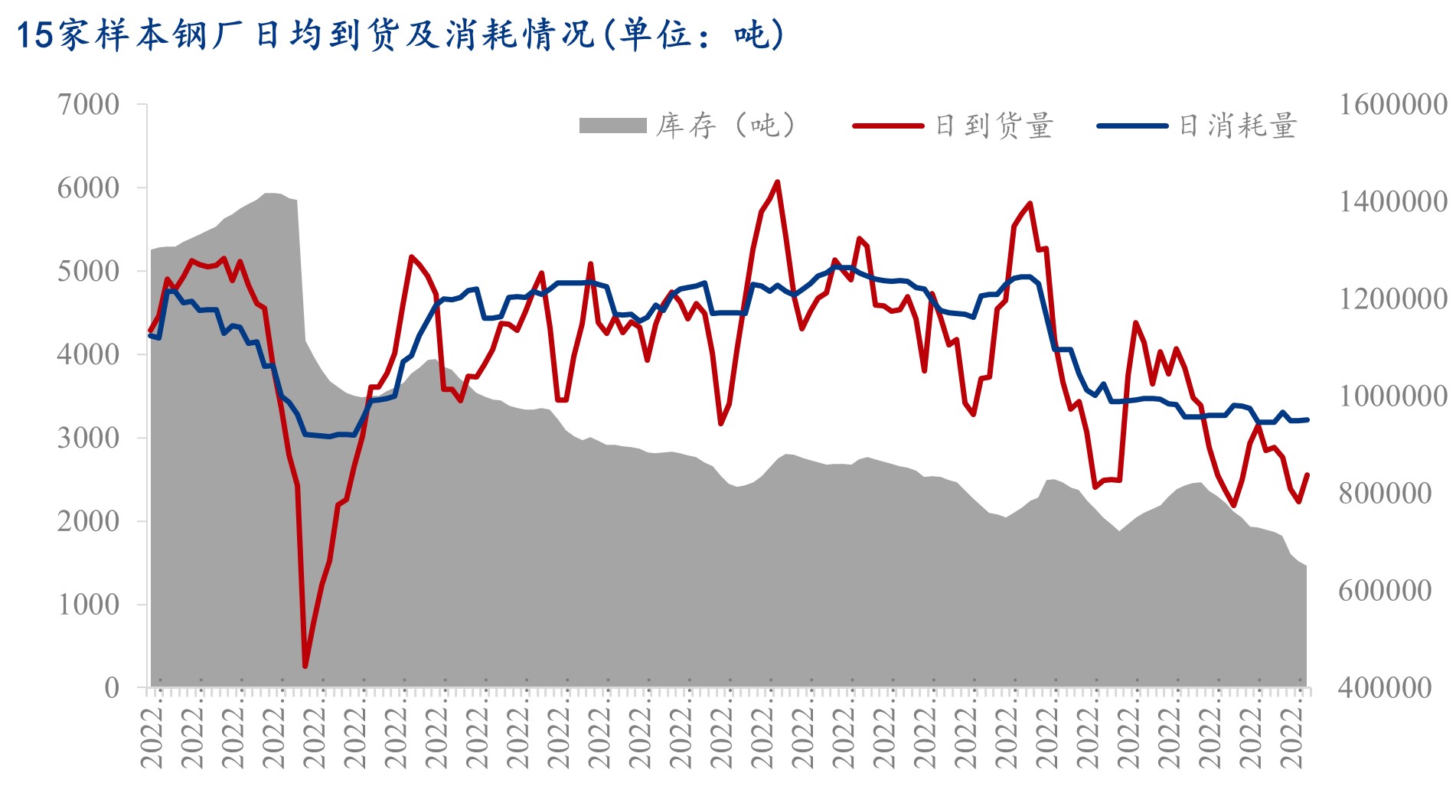 數(shù)據(jù)來(lái)看,14日全國(guó)15家長(zhǎng)、短流程代表鋼廠廢鋼庫(kù)存總量77.23萬(wàn)噸,較昨日增0.08萬(wàn)噸,增0.1%;庫(kù)存周轉(zhuǎn)天10.8天,較昨日增0.1天;日均消耗3953.33噸,較昨日降0.84%;日均到貨量4006.67噸,較昨日增5.07%。從需求的表現(xiàn)來(lái)看,距離春節(jié)時(shí)間越近,季節(jié)性停休面積將越廣,減產(chǎn)預(yù)期越強(qiáng)。且考慮到高成本、負(fù)盈利、低需求等因素,部分區(qū)域短流程企業(yè)減產(chǎn)幅度較往年有提前,長(zhǎng)流程在完成冬儲(chǔ)訂單和自儲(chǔ)庫(kù)存后也逐步執(zhí)行減產(chǎn)計(jì)劃,鋼廠用廢意愿表現(xiàn)出逐步走弱的態(tài)勢(shì),從15家鋼廠廢鋼日均消耗量數(shù)據(jù)上也可以看出,14日均消耗3953.33噸,較昨日降0.84%;不過從目前鋼廠的庫(kù)存平均可用天數(shù)來(lái)看,當(dāng)前全國(guó)主要鋼廠廢鋼庫(kù)存可用天數(shù)在10.8天,雖然較上周相比有所提升,但整體的增量低于預(yù)期,短期內(nèi)鋼廠仍存在補(bǔ)庫(kù)需求,或?qū)?duì)廢鋼價(jià)格有一定支撐。