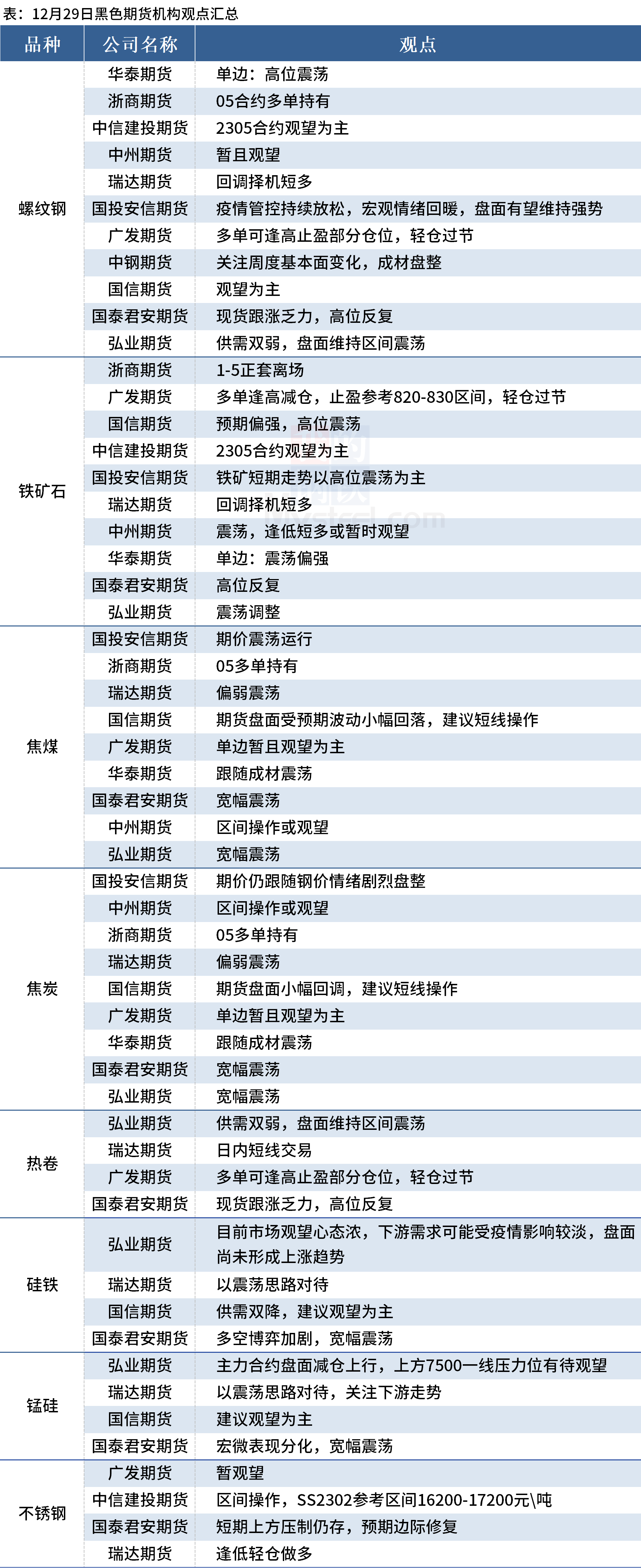 據(jù)Mysteel統(tǒng)計12月29日11家期貨機構(gòu)操作策略,其中多數(shù)機構(gòu)建議螺紋鋼觀望為主,建議鐵礦石震蕩運行,焦煤、焦炭震蕩運行。具體匯總內(nèi)容如下: