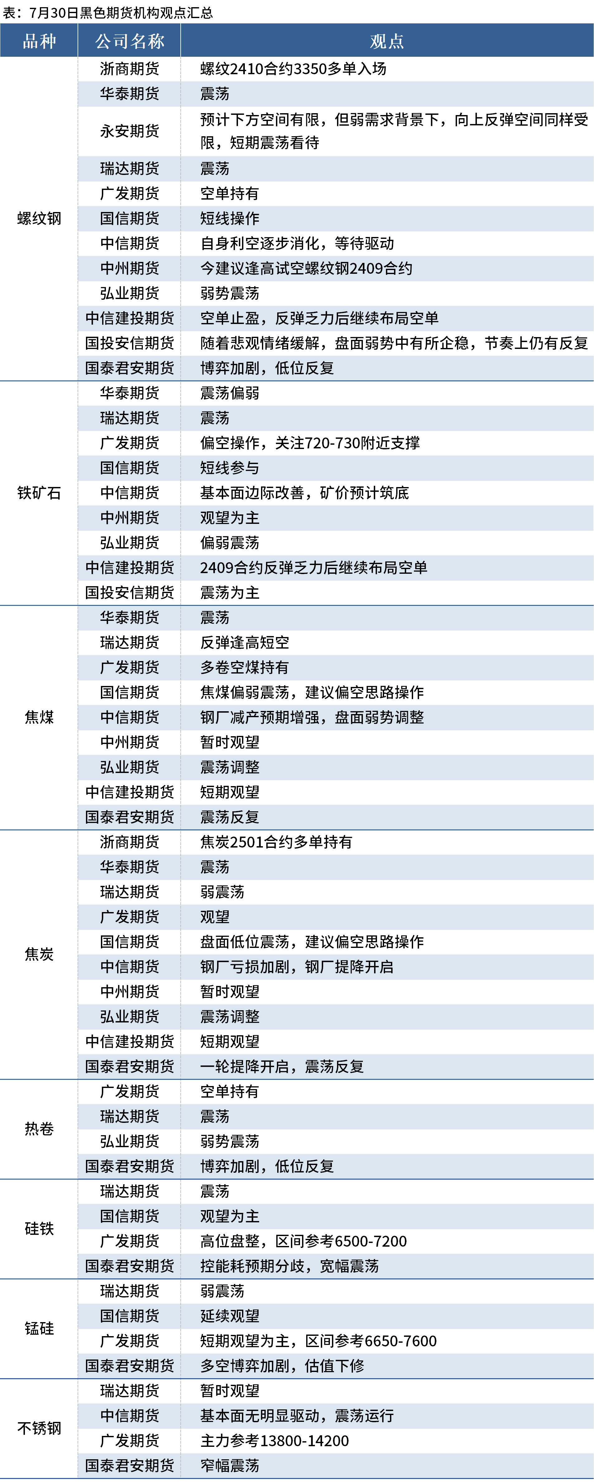 據(jù)Mysteel統(tǒng)計(jì)7月30日12家期貨機(jī)構(gòu)操作策略,其中多數(shù)機(jī)構(gòu)料螺紋鋼震蕩運(yùn)行,鐵礦石偏弱震蕩,焦煤、焦炭震蕩運(yùn)行。具體匯總內(nèi)容如下: