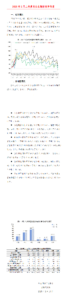 2025年2月上旬,重點(diǎn)統(tǒng)計(jì)鋼鐵企業(yè)(以下簡(jiǎn)稱“重點(diǎn)企業(yè)”)鋼材庫(kù)存量1621萬(wàn)噸,環(huán)比上一旬增加86萬(wàn)噸,增長(zhǎng)5.6%;比年初增加384萬(wàn)噸,增長(zhǎng)31.0%;比上月同旬增加362萬(wàn)噸,增長(zhǎng)28.8%;比去年同旬增加8萬(wàn)噸,增長(zhǎng)0.5%,比前年同旬減少182萬(wàn)噸,下降10.1%。