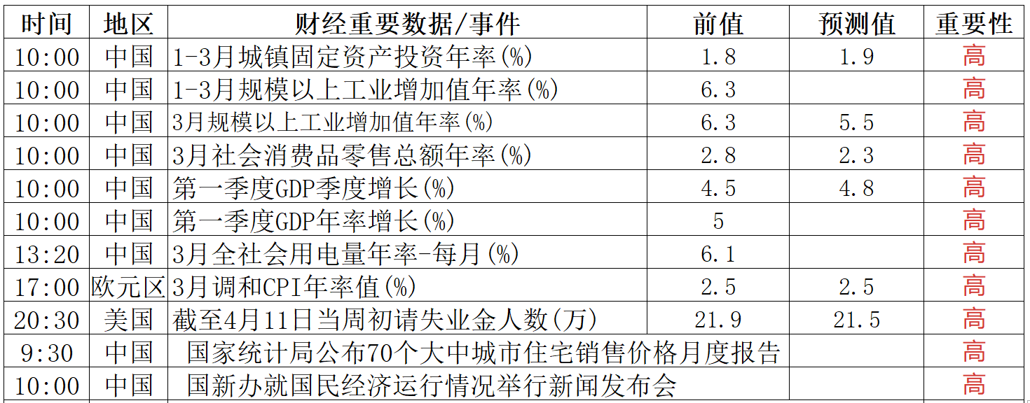 財經(jīng)重要數(shù)據(jù)/事件一覽